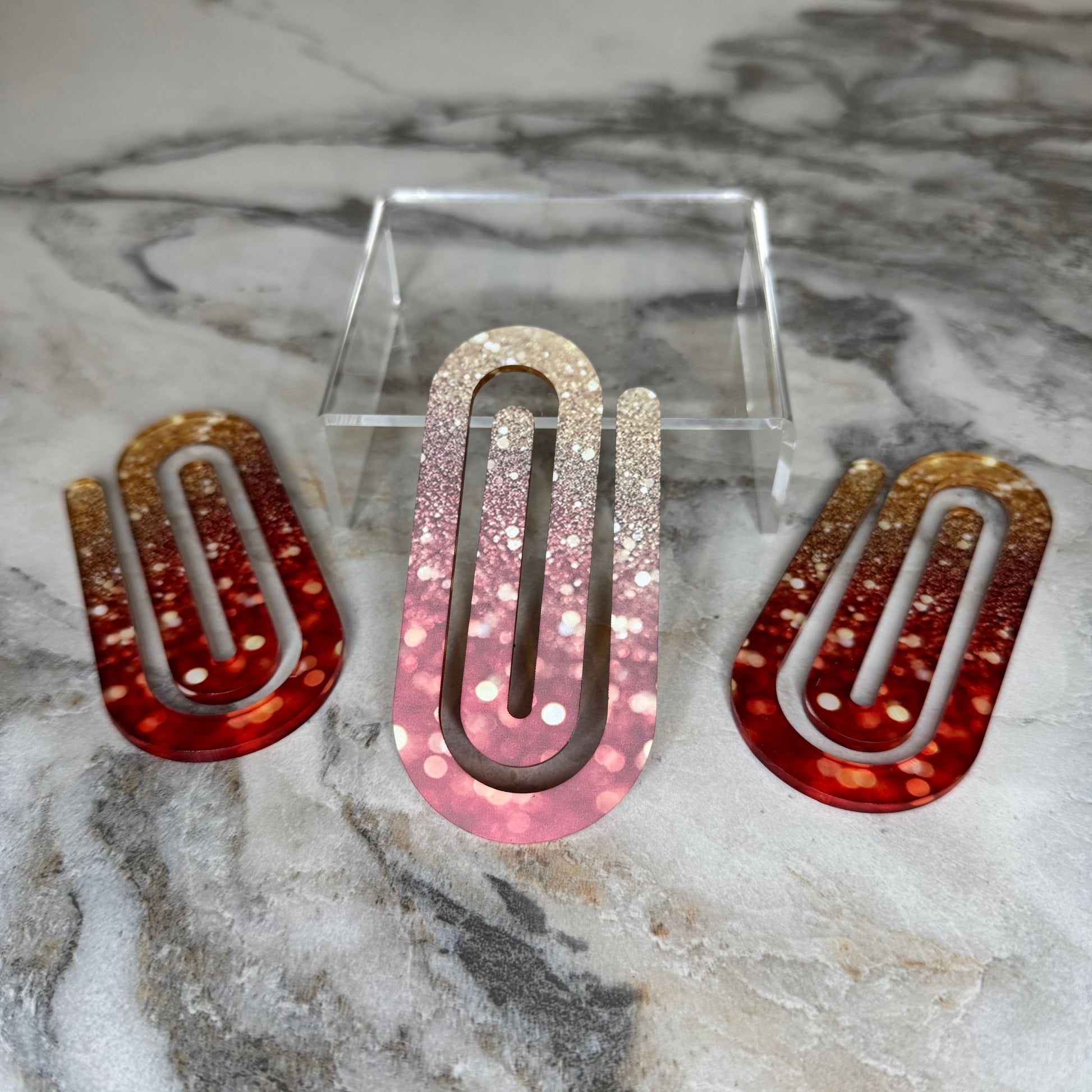 Jumbo Paperclip - Red Gold Ombre Glitter