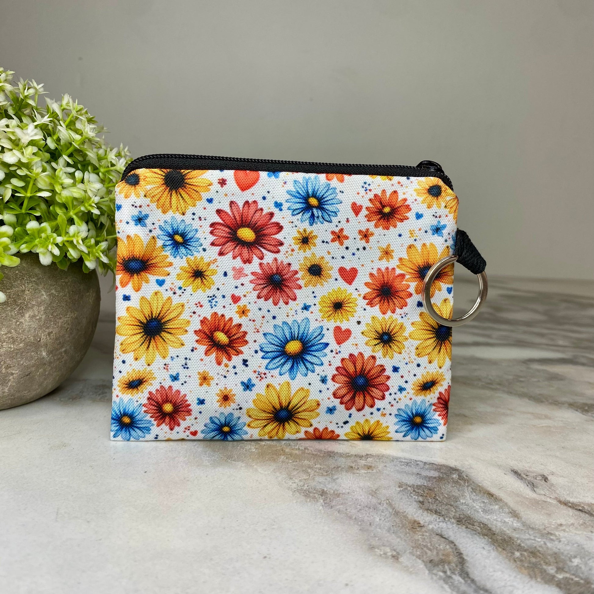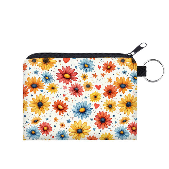 Mini Pouch - Floral Small Red Blue Yellow Daisy