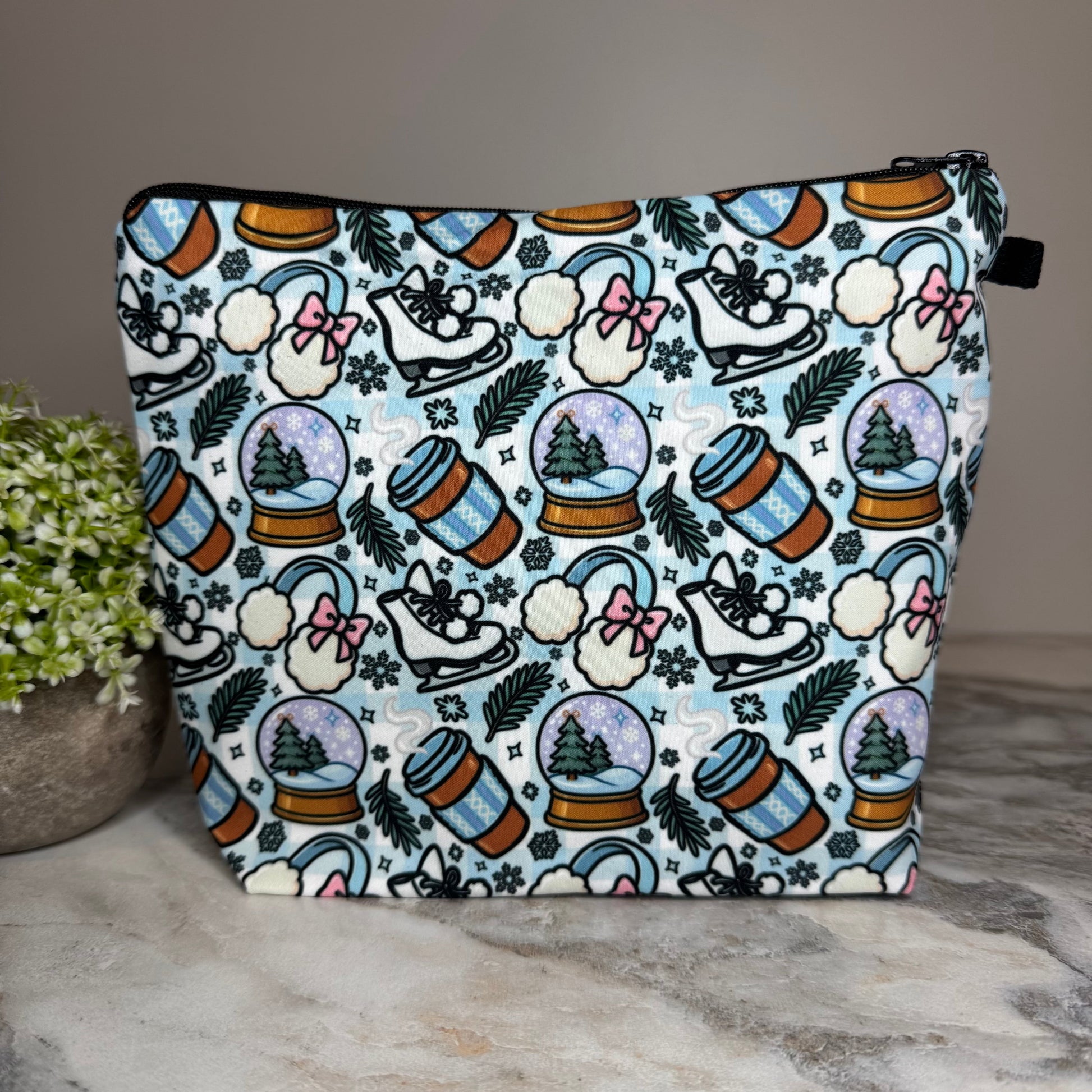 Pouch XL - Christmas Light Blue Snow Globe Ice Skate