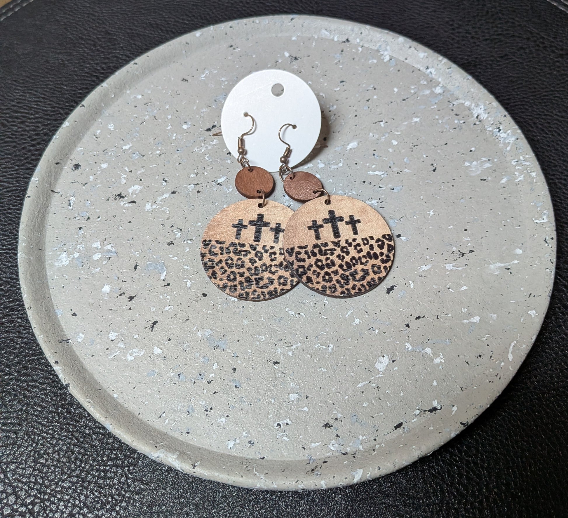 Wooden Cheetah Cross Earrings